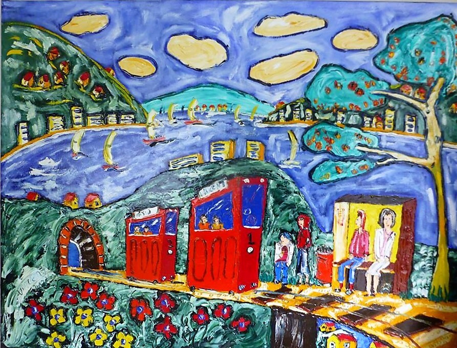 Paul Vincent has been active recently and his always creative mind has come up with several interesting and quirky new artworks, including 'Chinese Whispers' and 'Love Alert' below. Also back in the gallery a large Vincent Duncan 'Wellington Cable Cars' From 2016. It is a top example of Vincent Duncan's bold vibrant and humorous textured oil painting, and hasn't been recently exhibited..