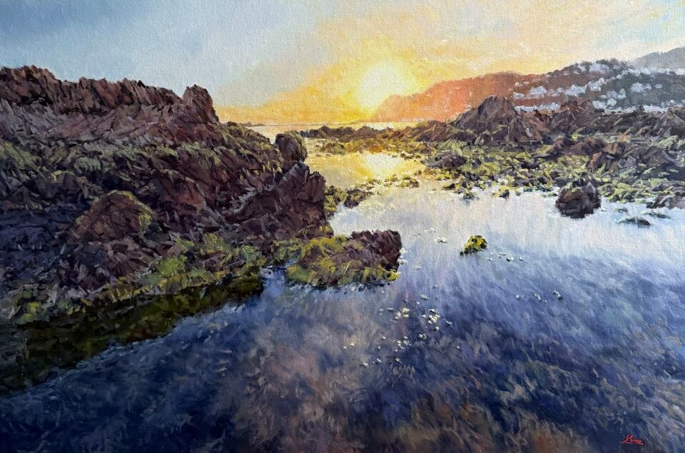 New art this month includes Iwen Yong's third version of an Island Bay sunset. This one at 900mm x 600mm is smaller than the first two, one metre square, but equally evocative of the south coast. The water and underwater rocks in the foreground are totally mesmerising.