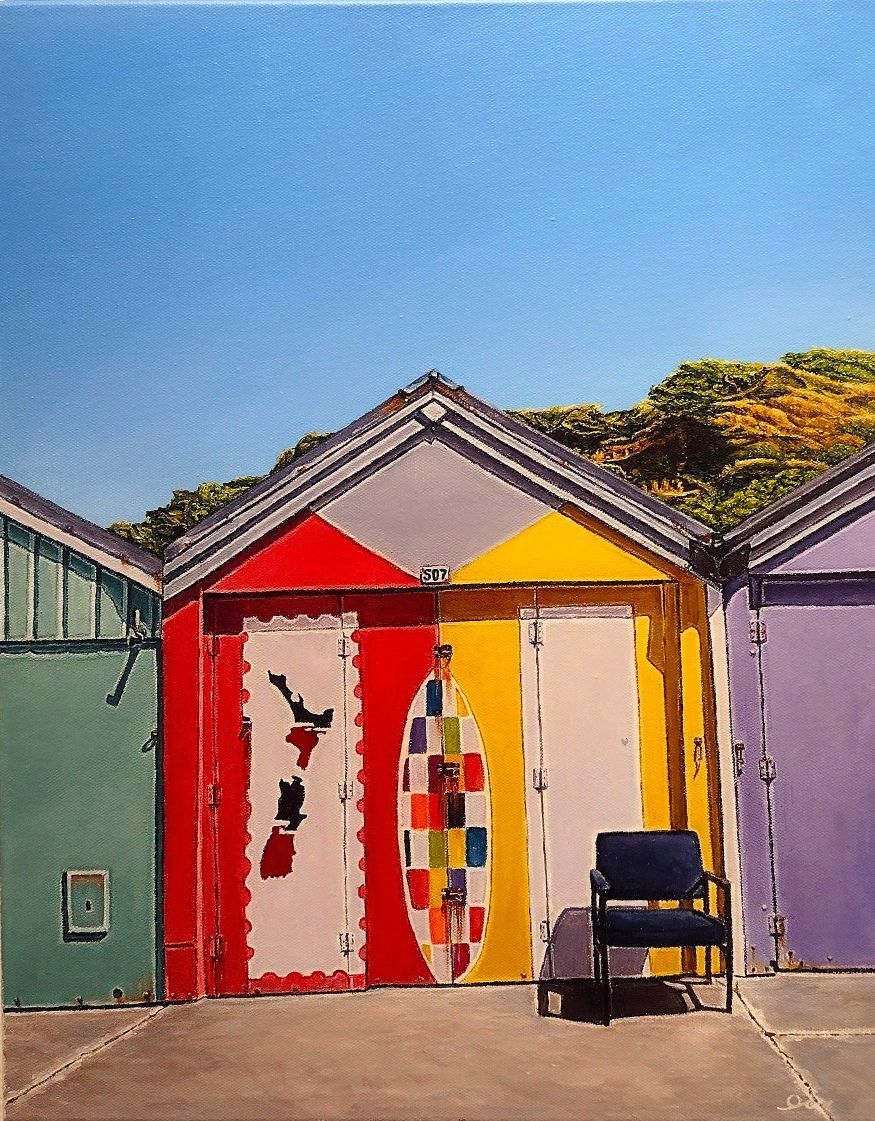 Please click on the images below for more details, 'Island Bay Sunset No 3' by Iwen Yong, Pollock inspired 'Summer's Twilight Easter Island Portal' by Richard Childs' and 'Summer Boatsheds' by Jill Sutton