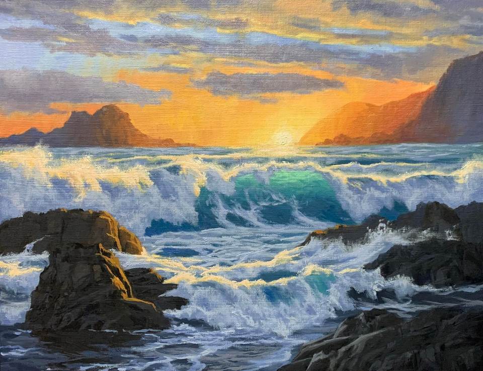 oil on boxed canvas size 360mm x 450mm x 40mm