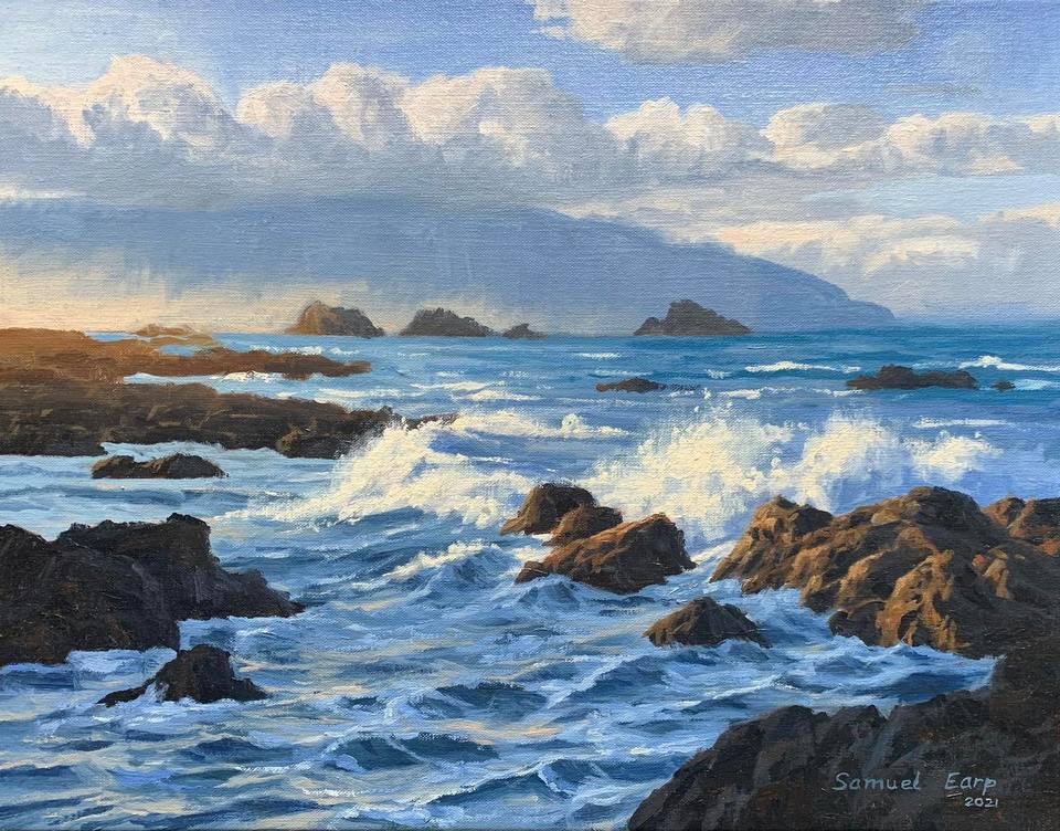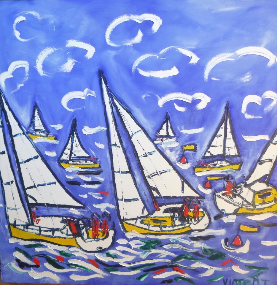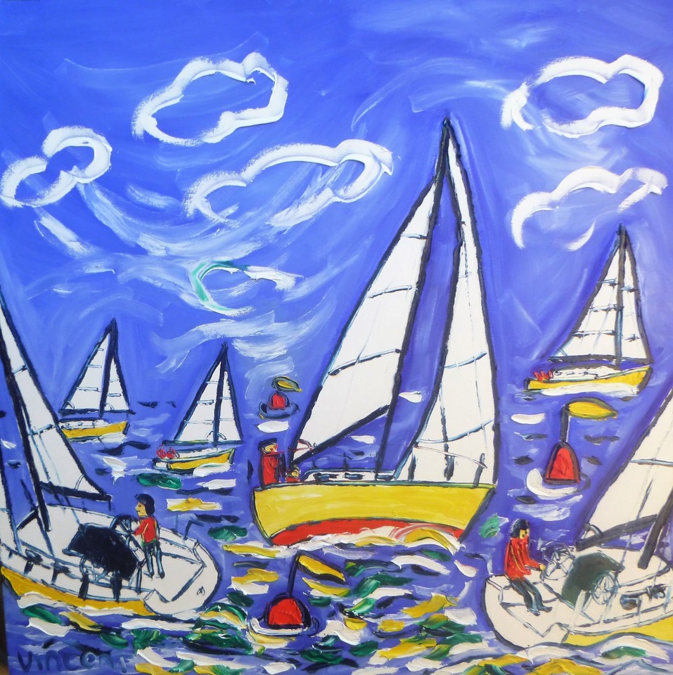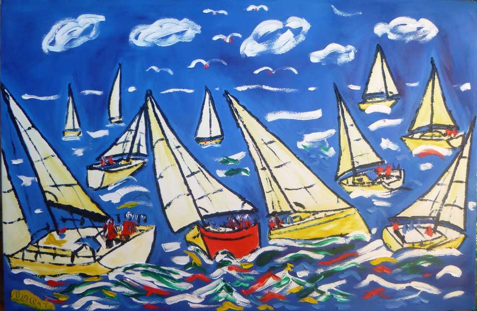 Sam Earp is now based in Northland but he has been working on four Wellington coastal scenes for the last few months and they arrived this week. Sam's paints with an exquisite light that talks to the mood of his seascapes and landscapes and his new work does this superbly. Please click on the images for more info. The smallest of the four is on the Small Painting page.Vincent Duncan has just finished a new series 'Sailing On' three large size vibrant energetic palette knife oil paintings. They are still drying, but if you want to be notified when they are ready, around July, please let me know.
