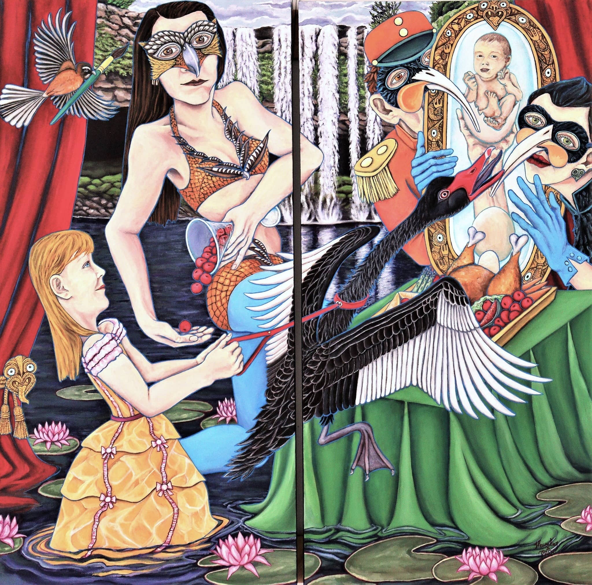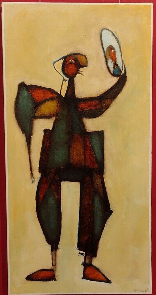 New Art in the gallery'Ah here's the problem' is one of three quirky humorous paintings from Wellington artist Paul Vincent. Paul is a well known artist and these are his first paintings in the gallery for some time Also new in the gallery are two of Tut Blumental's dreamy abstract seascapes and two Island Bay seascapes from Iwen Yong. See all the new paintings in the New Art Page